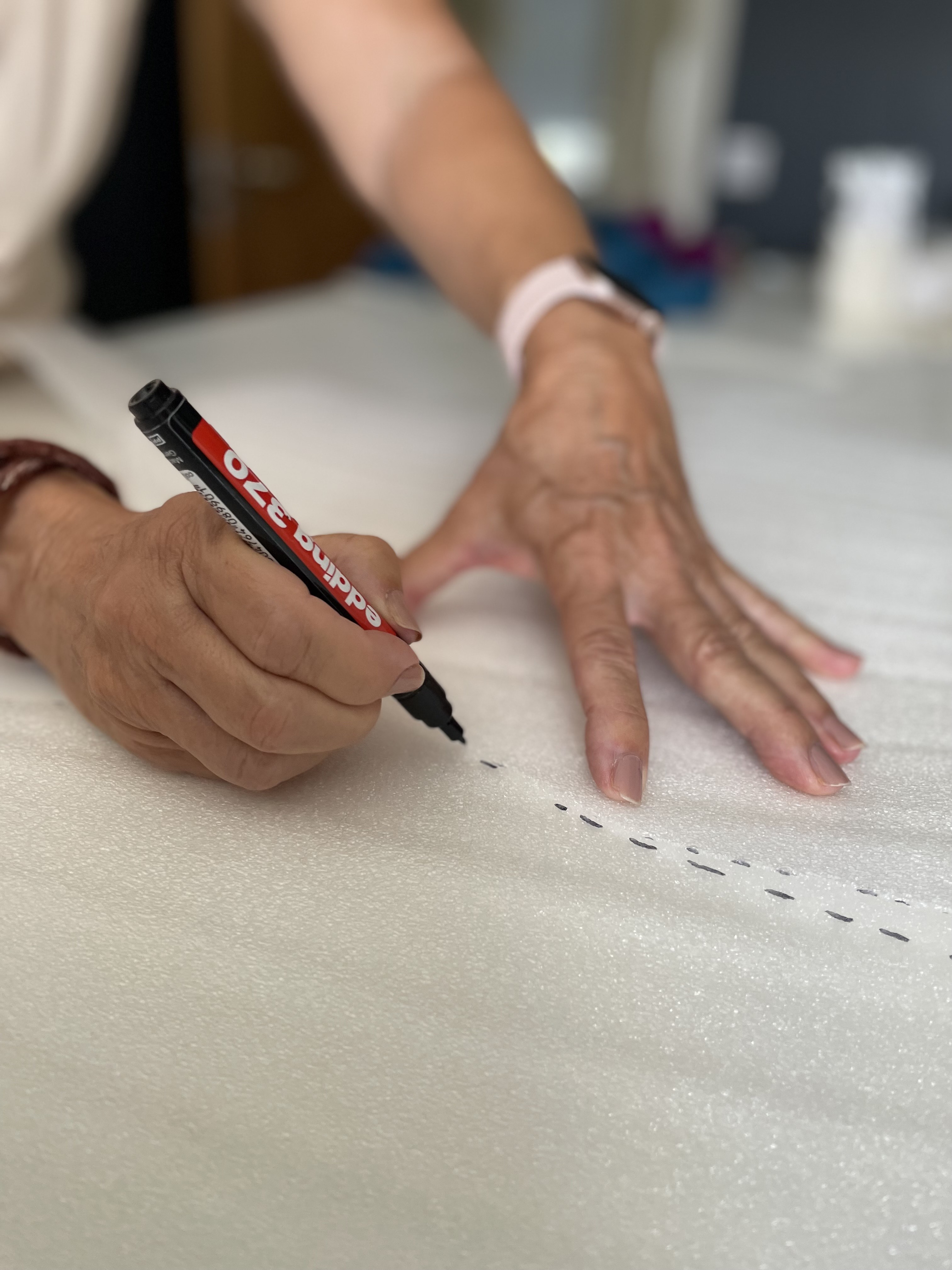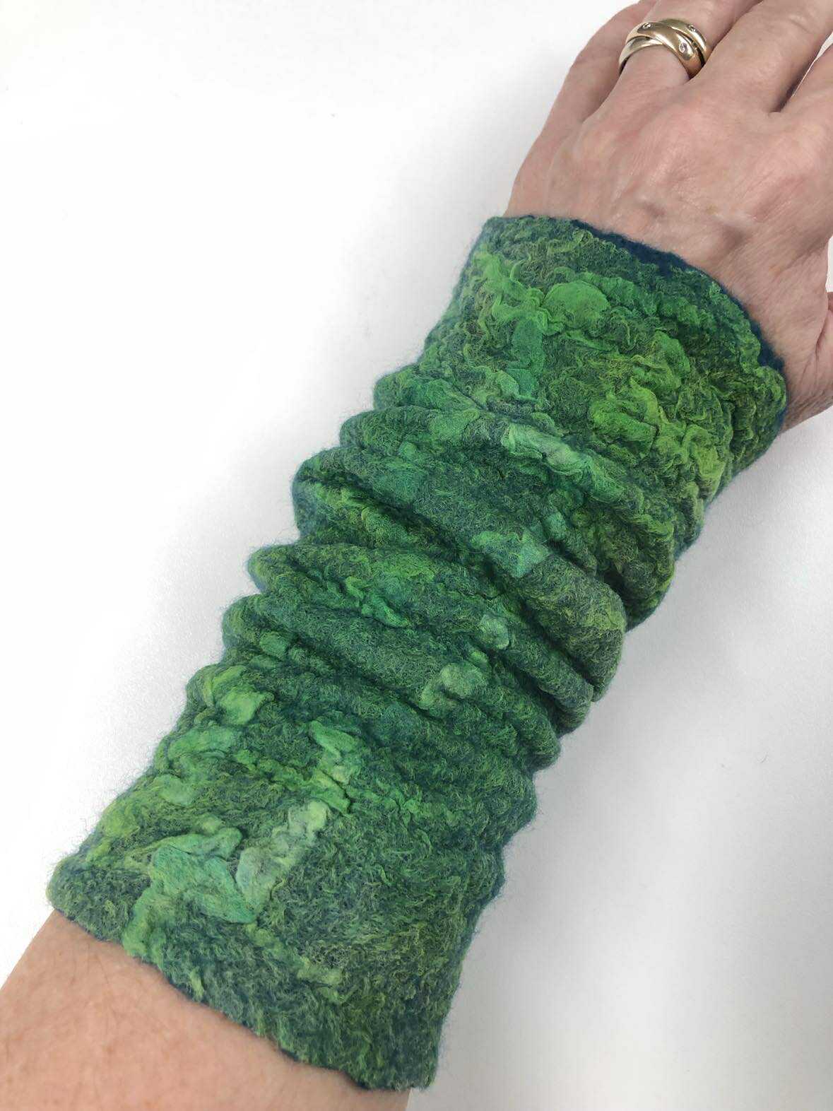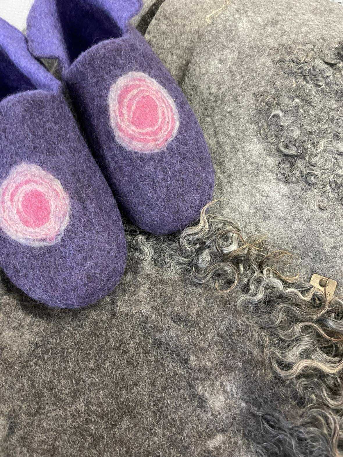 Vi tillverkar egna mönstermallar och våttovar ullen med händerna. På kursen får du goda råd om hur du tovar vacker och jämntjock filt utan hål och glesa partier.